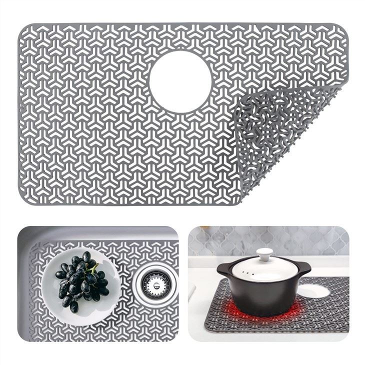 2. Résistant à la chaleur : le silicone est résistant à la chaleur, vous pouvez donc utiliser votre tapis d'évier comme dessous de plat pour protéger vos comptoirs des casseroles et poêles chaudes.